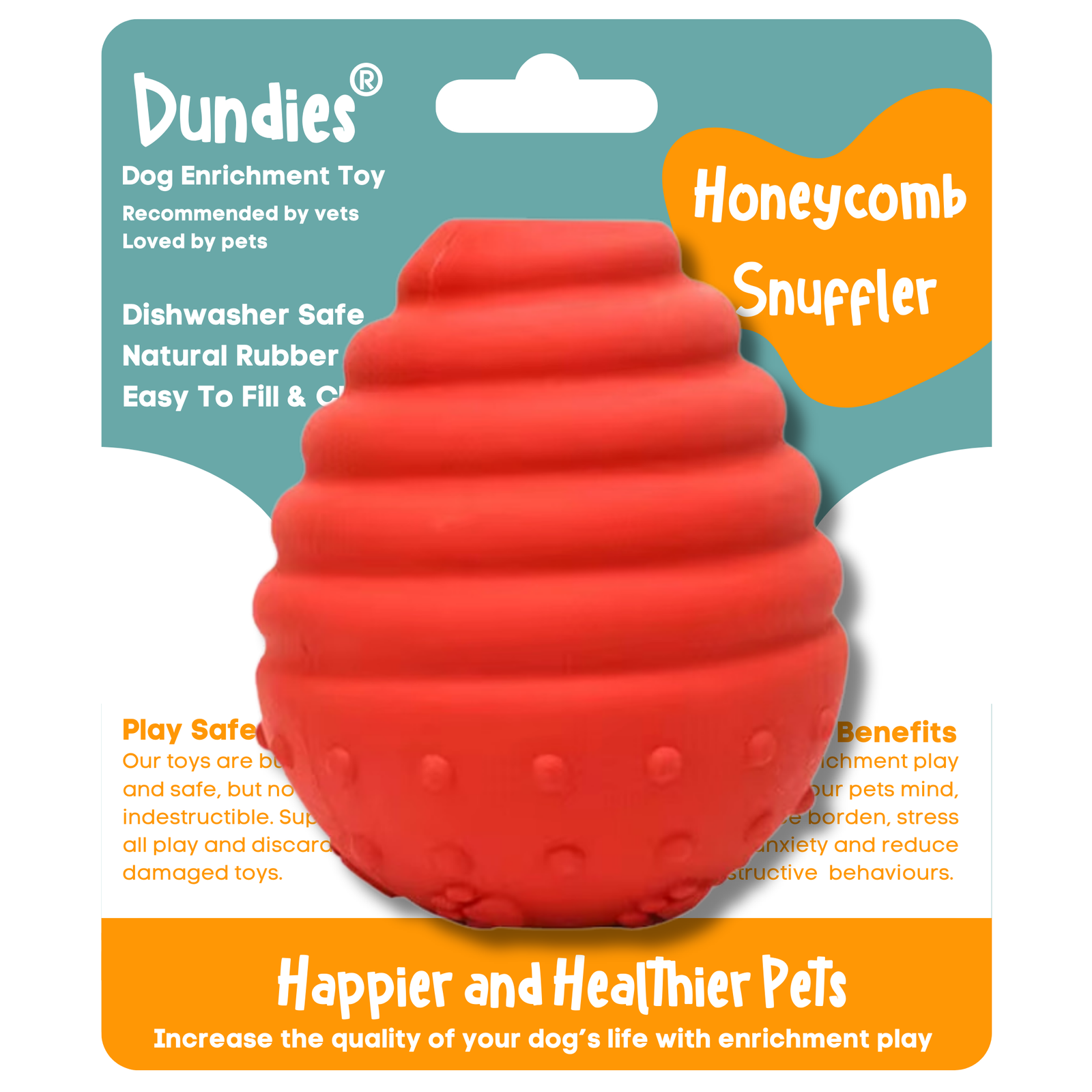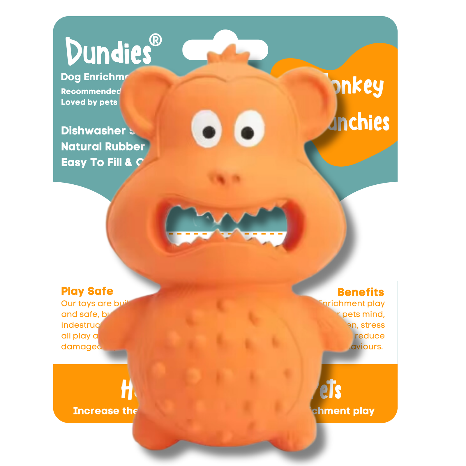 Dundies enrichment toys offer more than just play; they provide mental stimulation, reduce boredom, and promote positive behaviours. Discover the perfect toy from our 17 unique designs!Keep your dog entertained and engaged with Dundies' dishwasher-safe, easy-to-fill rubber toys.